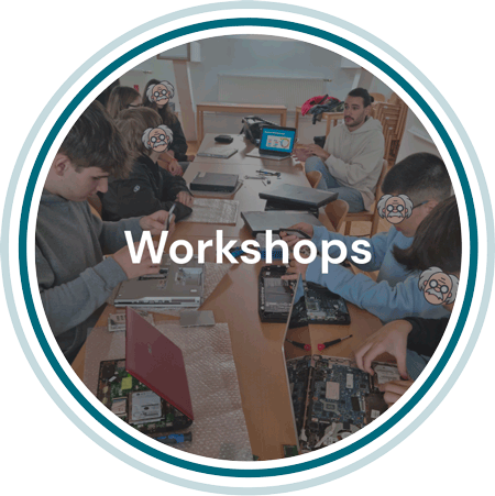 Wir bieten Workshops an Schulen an, um Schüler:innen die Grundlagen der Computerreperatur zu vermitteln. Unser Ziel ist es, ihr Interesse für Technologie zu wecken und das Bewusstsein für nachhaltiges Handeln zu stärken.